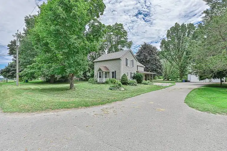 Lovely country home on sprawling almost 1ac lot. This cute family home has had some recent updates including flooring(24′), 4p bathroom update(22′) and granite counter top(24′). The large living room overlooks the front yard and is open to the dining area with new flooring. Massive master bedroom has his and hers walk-in closets. The home is surrounded by mature trees, lush lawns and farmers fields behind. The wrap around deck and beautiful yard is perfect for family gatherings or to relax and read a book. The oversized detached double car huge almost 1ac, 132′ x 330′ lot, with endless possibilities. Country living close to all of the desirable amenities and minutes to town. Come enjoy the Country!