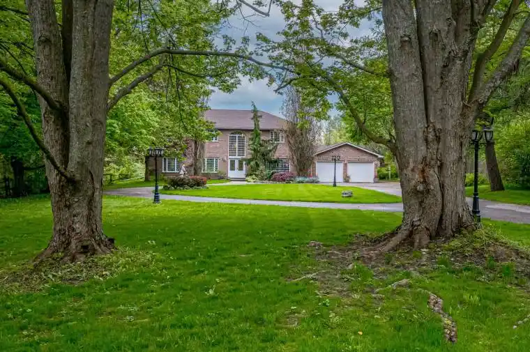 Welcome to your next chapter! This rare gem of an estate is a chance to have your dream home on the perfect secluded lot, still close to the city. This exceptional estate invites you to experience 6,500 square feet of thoughtfully designed spaces, blending open concept living with cozy private retreats. Nestled on a unique, secluded lot, the approach takes you down a stately tree-lined drive. Step inside and bask in the natural light in your stunning 2-story great room, where two sets of French doors open to your backyard oasis. The gourmet, professionally designed, kitchen is a chef’s paradise, offering space for multiple cooks and seamless entertaining. Formal dinners await in the elegant dining room, just steps from the grand foyer and kitchen. Upstairs, the primary suite is a private retreat, complete with a luxurious five-piece ensuite and a massive walk-in closet. Two additional bedrooms on this floor each feature their own ensuite baths and walk-in closets, ensuring comfort and privacy for family or guests. A fourth bedroom, conveniently located on the main floor, offers its own adjacent 3-piece bath, perfect for multi-generational living or guest accommodations. Need more flexibility? Two main-floor offices provide ideal work-from-home setups or creative spaces. Downstairs the expansive recreation room is finished to the same high standard as the rest of the home. You’ll also find a second kitchen, exercise room, media room, 2-piece bath, and ample storage on this level. The outdoor living space is tailored for unforgettable gatherings, featuring an inground pool, a cabana with a 2-piece bath, expansive patios, and deck areas for dining, lounging, and family fun. Beyond the home nature lovers will enjoy the nearby Caldon Trailway, and Pearson is under a 1/2 hour away providing countryside living without compromise.