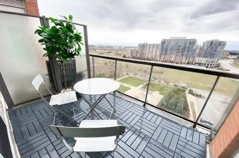 THE HIGHEST FLOOR LEVEL OF THIS LAYOUT!! Unique ROOFLESS balcony, the feeling of a roof garden! Unobstructed panoramic views in a prime downtown Markham Unionville location! 9ft ceilings, 1+study condo, comes with parking and storage locker! Very bright! There are plenty of sun-filled areas by the floor-to-ceiling windows. Rarely such a spacious layout becomes available, approaching 700 sq. ft.! Close to Hwy, plazas, schools, shopping and walking distance to Viva!