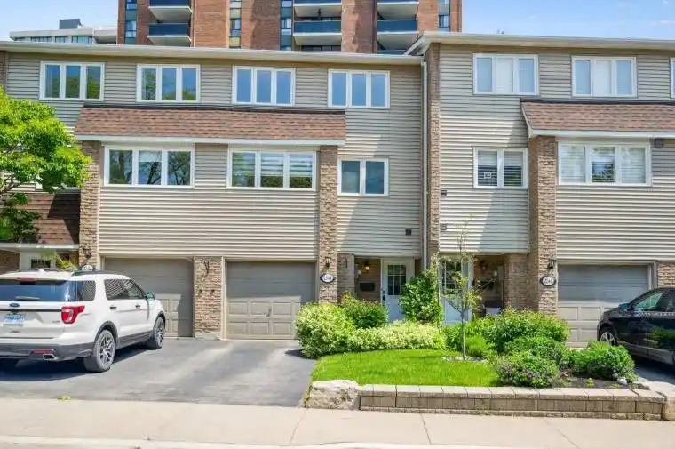 STEPS TO THE LAKE AND THE HEART OF BRONTE! Walk to charming boutiques, trendy restaurants, and the vibrant waterfront scene of Bronte Village from this beautifully maintained three bedroom condominium townhome, nestled in a sought-after lakeside neighbourhood. Just steps to Waterfront Trail, Bronte Heritage Waterfront Park, and Lake Ontario, this home delivers an unbeatable lifestyle of comfort and convenience. The spacious second level boasts an eat-in kitchen with abundant cabinetry, laundry room, and dining area with laminate flooring that overlooks the living room below. The living room features a wood-beamed vaulted ceiling and a walkout to an oversized balcony, perfect for relaxed outdoor dining or entertaining. The third level offers a large primary bedroom with double closets, two additional bedrooms, and a four-piece main bathroom. On the ground level, you’ll find a generous family/recreation room with laminate flooring and walkout to a covered patio, powder room, and a utility room for added storage. Enjoy a low-maintenance, fully fenced backyard with perennial gardens. This bright and welcoming townhome is your gateway to lakeside living in Bronte. Don’t miss this exceptional opportunity to live steps from the lake, trails, and every amenity Bronte has to offer! (one image contains virtual staging)