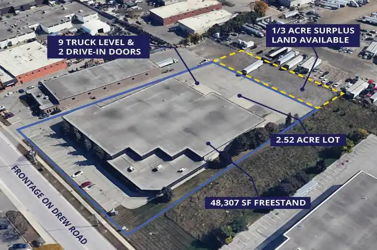 Super Rare Freestand with Approx. 1/3 acre of surplus land (+/-15 trailer positions) available. White-boxed Warehouse. Freestanding building with immediate access to Pearson Airport, major highways, and transit. Recently renovated with upgrades to doors, LED lighting, floors, and offices. High dock door ratio: 9 dock doors and 2 drive-in doors. Secured and paved yard with 53 trailer access. Immediate vacant possession. Ample power (600 amps).