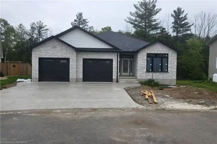Ravine location brick bungalow, this home is basically completed. Features finished lower level and many special features: AYA kitchen with granite or quartz countertops, center island and walk-in pantry. Patio doors from dinette to covered deck; open concept living / dining / kitchen area, with fireplaces in living areas up and down. Walk-in closets in both main floor bedrooms. Combination garage – entry and main floor laundry and mudroom. Pony panel has been installed to enable a substantial stationary electricity generator. Lower level finished with two extra bedrooms or special purpose rooms; third full bath; huge 16′ X 25′ family room with fireplace; walkout from utility area to full 2-car garage.1523 square-feet on main floor plus 1323 finished down. All this near parkland and Kincardine trail access and only four blocks to downtown, schools and arena / community centre. Yard will be sodded front and rear. Please note room measurements have been rounded..