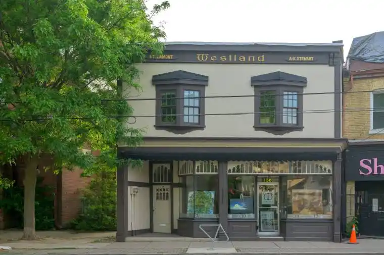 The Westland Building circa 1921 has been a visual highlight of the Wortley Village and Old South for many years. It housed a pharmacy, an antique shop and now a respected art gallery that has championed many local artists from the novice to the experienced. 156 Wortley Road is a visual delight both inside and out – the period front windows and the vintage façade pull our imagination back into yesteryears when life moved at a much slower pace. One step inside the gallery and you sense the pride of ownership and the care that the current owners have put into the most recent transformation of the interior.It is our hope that the next steward of this magnificent landmark (2010 ACO-HLF Heritage Award winner for the facade restoration) will nurture it forward with the respect owed to a Grand Dame. The possibilities are endless – the quaint second floor could easily be a living quarters for a home occupation – the main floor is a blank canvas! As a realtor, we often coin these one of a kind properties as one of the jewels in the crown of an investors portfolio. 156 Wortley Road is situated in the heart of the Old South village – its commercial visibility is undeniably unparalleled.
