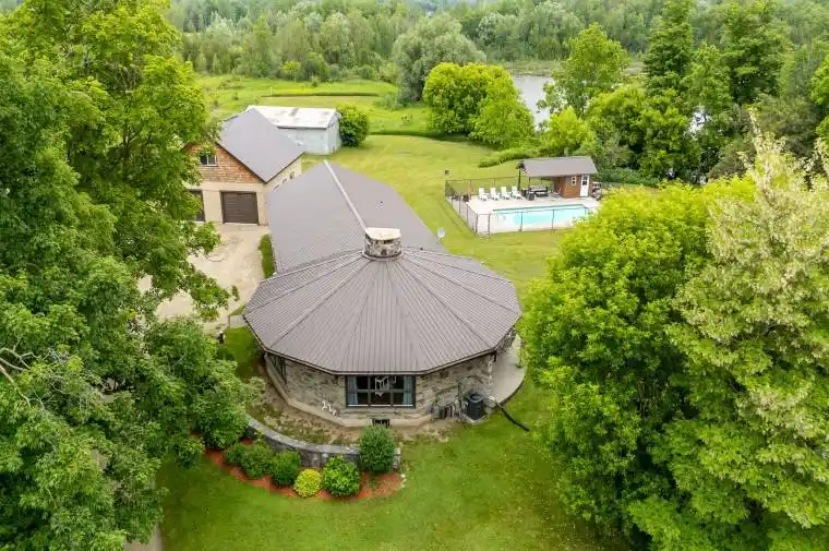 Discover the perfect blend of comfort, space, and functionality in this stunning 5-bedroom, 3.5-bathroom country home, ideally located just minutes from Highway 401. Set on a beautiful, private lot, this property offers the peace of rural living with unbeatable convenience for commuters. Step inside to a bright, open-concept layout designed for both relaxation and entertaining. At the heart of the home, a stunning central fireplace anchors the main living area, creating a cozy focal point that flows seamlessly into the kitchen and dining spaces. Large windows bring in natural light and frame picturesque views of the surrounding countryside. Each of the five bedrooms is generously sized, with the primary suite boasting a private ensuite, walk-in closet and large balcony looking over your backyard oasis backing onto Mill Pond. The in-ground pool and cabana are ideal for summer entertaining, relaxing, or making family memories. A separate lofted garage workshop offers ample room for hobbies, storage, or a home business set up perfect for tradespeople, car enthusiasts, or anyone in need of extra space. This property delivers the best of country living with quick access to schools, shopping, and major routes.