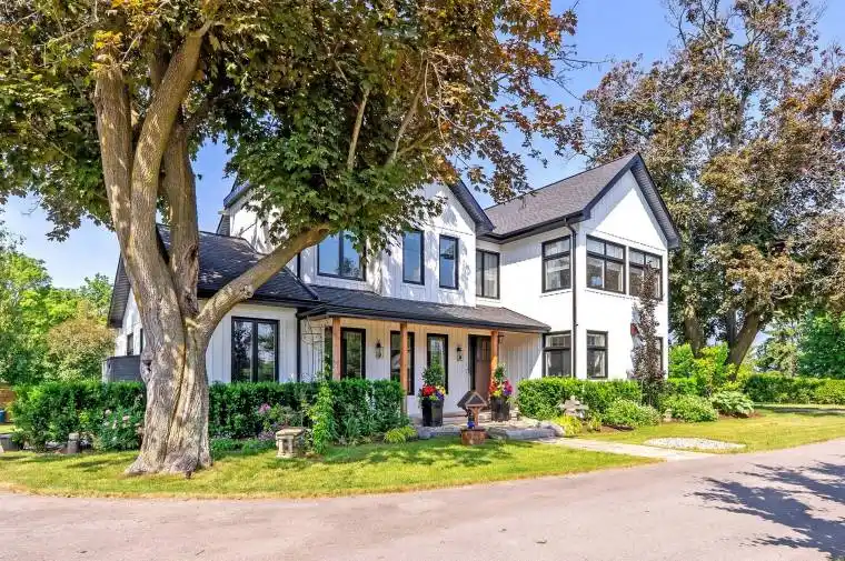 Discover unparalleled lakeside living in this custom-built (2021) board and batten (Cape Cod) farmhouse, boasting approx. 100′ +/- of deeded private access to Lake Simcoe. Situated on a sprawling 3/4 acre, this exceptional property features multiple outbuildings, including an oversized (23′ X 33′) 3-car garage with loft (approx. 850 sqft) and an oversized deck, workshop (12′ X 35′) , garden shed (12′ X 20′), and pole barn (approx. 20′ X 35′), all accessed by a private, paved driveway. Inside, experience the pride of ownership with attention to detail. Hickory hardwood flooring flows throughout the 4-bedroom, 3.5 bathroom home. Bedrooms with custom mill-work closets. Upstairs bathrooms with curb-less showers and in-floor heating. Enjoy soaring 9’6″ ceilings on the main floor with in-ceiling speakers, 8′ ceilings in the full basement, and distinctive 8′ tray and pitched ceilings on the second floor. The gourmet kitchen is a chef’s dream, featuring an oversized island with seating for 6 and multiple pantries. Electric blinds with remotes in family room and kitchen. Professionally landscaped grounds showcase Credit Valley flagstone walkways, with landscape lighting and a cozy fire pit area. A private dock with a change room-storage shed provides direct access to the lake, multiple sitting areas to soak in the breathtaking unobstructed lake view and sunsets. Relax and unwind on the screened-in wrap-around porch, complete with pet-friendly screening. This property is truly one-of-a-kind, with too many special features to list. Experience the epitome of lakeside luxury.