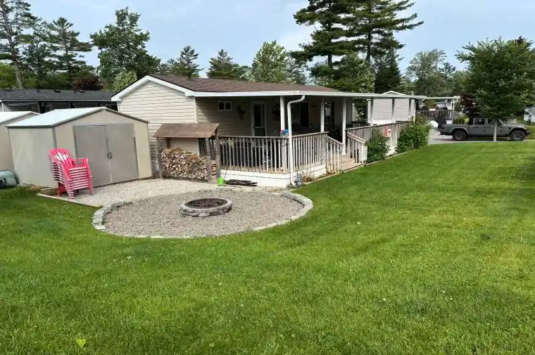 Escape to your ideal summer retreat at Wasaga Countrylife Resort with this immaculate 2016 Northlander Cottager Reflection model. Available seasonally from April 25th to November 16th, this fully furnished 2-bedroom, 1-bathroom cottage is perfectly situated on a quiet street just a short walk from the sandy shores of Georgian Bay. Inside, the bright, open-concept layout features vaulted ceilings, modern appliances, and abundant cabinetry, creating a welcoming and functional space for both relaxing and entertaining. The primary bedroom offers a comfortable queen-size bed and generous closet space, while the second bedroom includes bunk beds with convenient under-bed storage perfect for families. Outside, enjoy an oversized covered deck, a low-maintenance yard with a firepit, and a spacious storage shed, all set on a fully engineered concrete pad with clean, dry storage underneath and a paved driveway. This turnkey unit is ready for immediate enjoyment and is located within a vibrant, gated resort community that offers outstanding amenities including five inground pools, a splash pad, clubhouse, tennis court, playgrounds, mini-golf, and easy beach access. Seasonal site fees for 2025 are $6,420 plus HST. Don’t miss this opportunity to own a carefree summer getaway schedule your showing today!