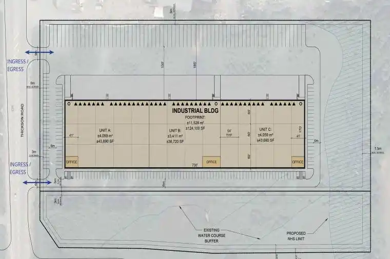Design-build purchase opportunity in prime Whitby location. +/- 124,000 SF proposed freestanding building with the opportunity to customize to suit. Pending site plan approval. Access to variety of amenities & large labour pool. 130′ shipping court depth, 54×40 bay sizing & 60′ staging bay. Heavypower available. 65 trailer parking stalls. LEED & Zero Carbon certification available.