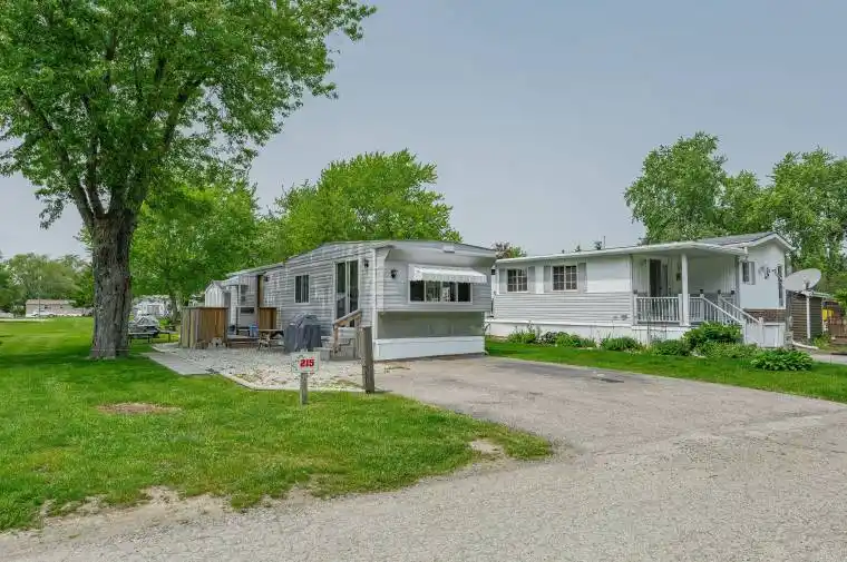 Welcome to 580 Beaver Creek Road Unit 215. This modular home is located on a quiet road within Green Acre Park in Waterloo – minutes from Universities, St. Jacobs, major highways and Laurel Creek Conservation. This home offers 452 sq. ft. of living space with one bedroom and one bathroom. Entering the home, living room and kitchen greet you for an open concept floor plan. With windows throughout allowing lots of natural light to shine through. Sliding doors off of the living room make it accessible to the yard. Steps away, you will find the bedroom and a three piece bathroom. The exterior space leaves plenty of room for outdoor dining, lounging and entertaining- picnics and a fire pit. Notable updates include freshly painted, newer floors, newer bathroom and plumbing, newer electric water heater and fridge. Enjoy the comforts of 10 month seasonal living (park closed Jan and Feb) with a turn key home, surrounded by nature, old growth trees and a spacious lot. Green Acre Park features a community swimming pool, a games room, a catch and release fishing pond for plenty of outdoor activities. This property is the perfect getaway for the ultimate cottage feel with the modern convenience of amenities around the corner and ample visitor parking. Monthly Land Lease fee $935.17 includes water & taxes (park closed Jan & Feb).