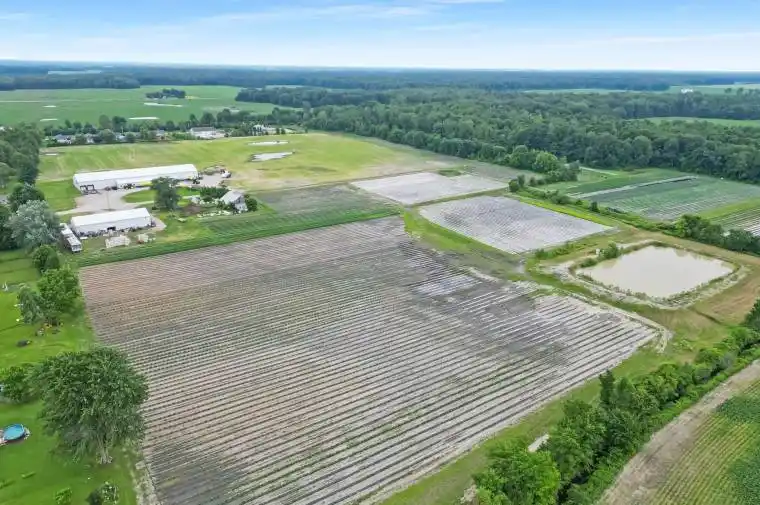 Own 69.76 acres of certified organic farmland in Newbury & Southwest Middlesex. With 30 acres of workable land and direct access from paved Tucker Street, this property sits beside a growing residential subdivision offering both agricultural value and future development potential. Village of Newbury capacity at 44.48% of rated 297m3 for wastewater treatment & sewage. The land features a 104′ x 50′ insulated metal shop with 16′ ceilings, three 14′ x 12′ overhead doors, a 10′ x 8′ loading dock door, walk-in cooler, Hydro vegetable cooler, two washrooms, shower, kitchenette with stove, washer/dryer, and office space. Two fully serviced bunkhouses include kitchens, baths, heat & A/C ideal for seasonal workers or extra space. A roadside shed and a 40′ x 20′ barn (needs repair or removal) add further utility. Water and drainage are excellent with a large irrigation pond (approx. 75′ x 150′, 25′ deep), a surrounding creek, and tiled fields. City water, sewer, and gas are at the lot line; currently serviced by propane and 200 Amp electrical. The Township has shown a favorable stance toward rezoning, making this a smart investment for farmers, developers, or agri-business owners. Don’t miss this rare chance to secure a versatile property with strong income potential and long-term upside. Development potential. Seller may be open to vendor takeback. Book your showing today!