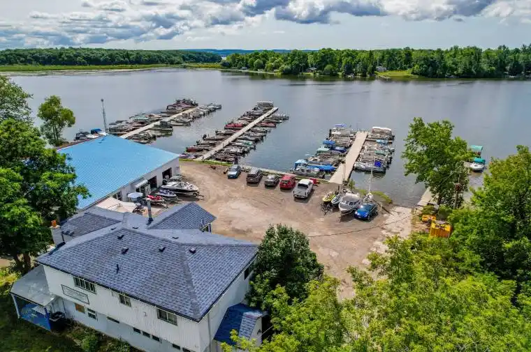 An amazing opportunity to own this long-established marina, with 280 feet of prime commercial tourism waterfront on the north shore of Rice Lake. Located on The Trent Water System with 1.2 acres on land and approximately 1 additional acre leased from Parks Canada (under the water and taxed separately). Whether you’re looking for a location to expand your marina operation, or looking for a change of lifestyle to combine work/play and cottaging, this is an opportunity to explore. There’s an already established demand for boat and personal watercraft rentals with 100 plus boat slips all completely reserved, servicing Cow and Long Island. Plus an ever growing demand for slips, with many other property owners and boat owners looking for a safe boat slip. 2-1 bedroom apartments, 1-2 bedroom and 1-3 bedroom (owners residence) and 3 shops under approx. 6000 sq. ft of roof. Part of that space is high and heated so its perfect for working all year servicing and repairing boats, snowmobiles, and personal watercraft, or building and selling docks for area cottagers. Large retail store selling everything from snacks to fuel, oil, marine parts and fishing tackle and bait. Marine fuel sales with TSSA inspected above ground fuel tank, propane tank and exchange service. There’s opportunity to increase revenue with boat shrink wrap and water taxis out to the islands. Also included is a construction barge with hoist service, $15 boat launch fee, and outdoor washrooms. Plus number of upgrades worth seeing. Only 45 mins to Oshawa, 15 Mins to Peterborough, 20 mins to 407. The owner opts to shut down for winter but you could stay open all winter season to sell fuel to snowmobilers, operate a store/hot snack bar to the numerous ice fishermen or snowmobilers. The shops could also be used or rented to marine mechanics, marine upholstery shops, etc. Many possibilities for additional revenue. Definitely a business and lifestyle opportunity worth seeing and exploring!
