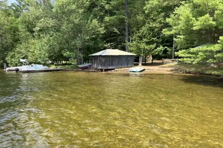 For more information, please click Brochure button. This exceptional waterfront property on beautiful Horseshoe Lake offers a rare combination of space, privacy, and charm with three separate dwelling/accommodations, each with its own private waterfront and dock. The fully winterized main house features three bedrooms, three bathrooms, a bright sunroom with lake views, and a self-contained basement apartment – ideal for guests, extended family, or potential rental income. The seasonal cottage includes three bedrooms, a full bathroom, and a beautifully updated kitchen, making it perfect for summer stays or shared family use. Just steps from the water, the adorable one-room cabin offers a high ceiling, a kitchenette, a 3-piece bathroom with a shower, and direct access to the lake – an ideal space for guests or a quiet personal retreat. The property boasts a gorgeous sandy shoreline stretching the entire length of the lot, offering shallow, crystal-clear water perfect for wading, swimming, and family fun. It’s an ideal setting for children and anyone who enjoys beach-style lake access. Recent renovations and upgrades throughout include new docks, new decks, a new sunroom, fully renovated interiors, a new furnace, updated water system, and a modernized kitchen. Located on a year-round road and just a short drive to the towns of Minden and Haliburton, this property offers convenience, comfort, and the perfect setting for year-round enjoyment. Whether you’re looking for a full-time residence, a seasonal escape, or a multi-family retreat, this property delivers everything you need to enjoy lakeside living at its finest.
