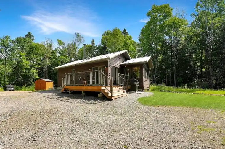 Welcome to Ten Acre Wood – Nestled among mature trees on a serene 10-acre parcel, this newly built, fully winterized 2-bedroom home offers the perfect balance of privacy, comfort, and access to the very best of Haliburton County. Inside, youll find a spacious, open-concept kitchen ideal for hosting or quiet evenings in, a cozy living area, and a screened-in porch thats perfect for working remotely or enjoying your morning coffee in nature listening to the songbirds. Forced air propane heating ensures year-round comfort, and a GenerLink system is already installed for convenience. Located just 13 minutes east of the shops, restaurants, grocery stores and galleries of Haliburton Village, this thoughtfully designed 4-season property is ideal as a full-time residence, cottage escape, or short-term rental investment. A short walk takes you to a peaceful rocky point on Minnicock Lake, while nearby municipal boat launches provide easy access to boating and swimming. In fall, the landscape comes alive with vibrant colour, and in winter, you’re just 30 minutes from skiing at Sir Sam’s and 15 minutes from snowmobile trails. The home is situated on a municipally maintained road for reliable year-round access. Whether you’re an outdoor enthusiast, artist, or remote worker, this property offers the space, scenery, and inspiration to make it your own.