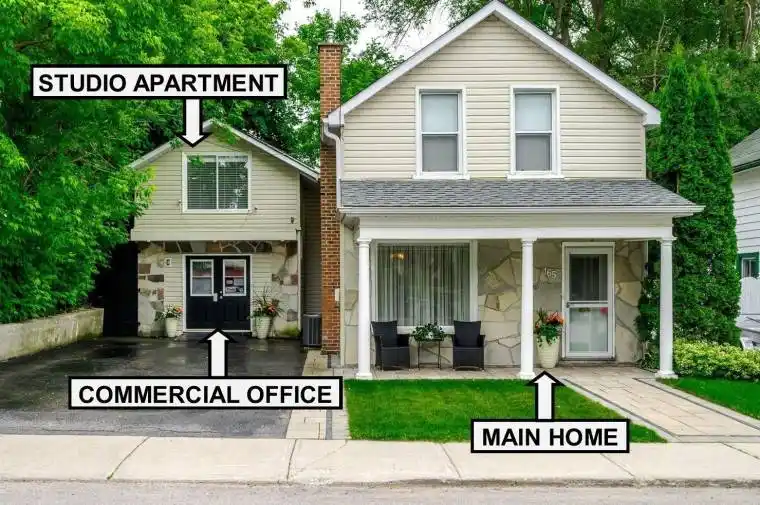 Live, Work & Thrive All in One Place, Discover the perfect blend of style, flexibility, and income potential in this unique, upgraded property designed with modern professionals in mind. The main 2-bedroom home features contemporary finishes like quartz kitchen countertops, hardwood floors, and cozy gas fireplaces ideal for relaxing after a busy day. Need space to grow your side hustle or run your own business? A dedicated business space is just steps away, making work-from-home life easier (and more productive) than ever. Plus, a separate studio apartment could be the perfect setup for guest stays, potential rental income, or even a creative retreat. Unwind in your own private courtyard oasis, complete with a tranquil water feature perfect for morning coffee or evening wind-downs. Recent updates like a new furnace, shingles, central air, and a heat pump mean you can move in worry-free and focus on what matters most. Modern living, flexible spaces, and income potential all in one address.
