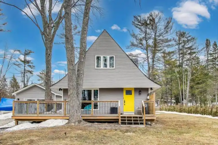 An income-producing, turnkey opportunity just two houses from Muskoka Beach and steps from the iconic Taboo Resort & Golf Club. This fully remodelled A-frame house blends modern comfort with timeless charm – with over $300k invested in thoughtful renovations, high-end contemporary finishes and city-style comforts. Deeded right-of-way access allows for mooring just steps from the shallow shoreline of Lake Muskoka – offering the full cottage experience, without the waterfront taxes. Featuring 3 bedrooms, 2.5 baths, the home showcases a bright, open layout, heated Muskoka room, custom natural oak cabinetry with gas fireplace, and a spacious wraparound deck ideal for elevated entertaining and peaceful retreats. Nestled on a quiet, exclusive street in Gravenhurst, the property is just 2 hours from Toronto and minutes to the towns boutique shops, fine dining and year-round amenities. Offered fully furnished and move-in ready, with established rental income and property management already in place, this is a rare, hassle-free opportunity- perfect for investors or first-time cottage owners seeking both a stylish personal escape and passive income. Steps from the sand. Designed for income. Ready to enjoy.