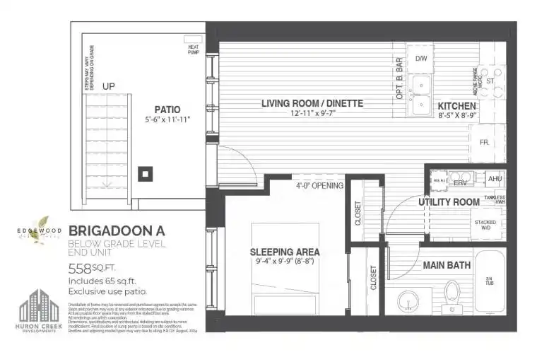 PLEASE VISIT – (((Sales Centre is located at 35 Trillium Drive, Unit 1 in Huron Creek Developments building – lower level 1- 4pm Saturday & Sunday))) Welcome to Brigadoon A – a stunning lower level 1-bedroom, 1-bathroom stacked townhome-style condo, perfectly blending urban convenience with natural tranquility. Tucked into the serene Brigadoon woods, this thoughtfully designed home offers a spacious open-concept layout ideal for both relaxing and entertaining. Step inside to discover generous-sized bedroom, with ample closet space. The patio extends your living space outdoors, offering a peaceful retreat to Brigadoon Woods. Enjoy the best of both worlds nature at your doorstep and all amenities within easy reach. Located close to top-rated schools, shopping, dining, and with quick access to major highways, this home offers exceptional lifestyle and value. Whether you’re a first-time buyer, downsizer, or investor, this beautifully maintained condo is a rare opportunity in a sought-after community. Don’t miss it!