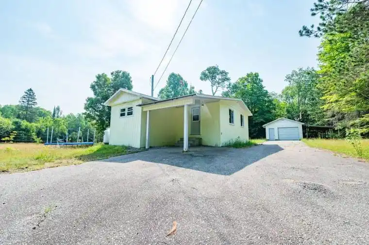 ALGONQUIN PARK NEARBY PRIVATE COUNTRY RETREAT ON 5 ACRES! Escape to your own hidden gem just minutes from Algonquin Park this charming 2-bedroom, 1-bath bungalow is nestled on 5 sprawling acres, complete with a serene pond and young fruit trees, offering the ultimate in peace and privacy. Featuring approximately 800 sq ft of cozy living space, this classic one-storey home is ideal for weekend getaways, a nature-lovers haven, or modest full-time residence . Propane-forced air heating, a well-supplied water system, and a spacious detached 2416 garage with concrete floor and attached carport offer comfort, convenience, and functionality .Recent updates in 2024 bring modern reliability: new owned water heater, upgraded pressure tank, water pump, and partial plumbing. The 1000-gallon two-chamber concrete septic tank was replaced in 2021. Outdoor amenities added in 2022 create a resort-like backyard experience: a Sojag gazebo on slab, concrete tile campfire pit, double swing, 4.6m trampoline, basketball hoop, telescope, and Everlast boxing bag with stand, perfect for family fun or unwind time .Inside, enjoy indoor recreation space set up with foosball, billiards, and table tennis, making this retreat great for entertaining or multigenerational use . Wildlife lovers will love the frequent visitors; deer, wild turkey, grouse, bunnies are regulars on the property .With approx. 400ft frontage and a deep 535ft lot, this property provides natural seclusion and potential for gardens, trails, or additional outbuildings. Taxes are a modest $824/year (2024), and at under $400,000.00 this is one of the most attractively priced country homes in the Whitney/South Algonquin market. Perfect for buyers seeking retreat, outdoor adventure, or a future Airbnb haven near Algonquin Park. Homes like this tend to move quicklyinquire today and book your private showing to experience this unique property firsthand