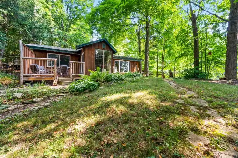 Tucked away in the coveted Roman Lake community, this rustic yet refined bungalow offers the ultimate private escape. Whether you’re searching for a peaceful weekend hideaway or a place to call home year-round, it’s a setting that soothes the soul. Wake to serene lake vistas framed by mature trees, where deer, birds, and other wildlife create a living backdrop. Inside, you’re welcomed with soaring vaulted ceilings, an updated kitchen, and an inviting blend of hardwood and slate underfoot. A built-in bar area takes full advantage of sweeping views, making every coffee or cocktail feel special. In the spa-inspired bathroom, heated floors add a touch of indulgence, while a corner jacuzzi-style tub and sleek glass walk-in shower promise relaxation at the end of the day or a refreshing start in the morning. Keep cozy with two fireplaces or rely on the efficiency of a forced air furnace when the seasons shift. Multiple windows let in generous natural light, accenting the warm wood finishes throughout. Step outside and the magic continues. Expansive decks, a private patio, and a charming detached log cabin with hydro provide endless opportunities for hosting, lounging, or simply enjoying the calm. One of the practical perks of the home is the hookup for a backup generator. Situated just minutes from the village of Hillsburgh, which offers small-town charm with welcoming shops, local eateries, and a friendly, walkable main street. For commuters, the location is just a short drive to Erin, Orangeville, and Guelph, with easy access to Georgetown, Milton, and Brampton, making it a comfortable commute to the GTA.