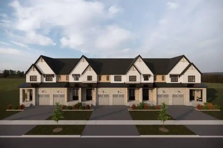 THE HOMESTEAD a lovely 1676sq ft interior townhome designed for efficiency and functionality at an affordable entry level price point. A thoughtfully laid out open concept living area that combines the living room, dining space, and kitchen all with 9′ ceilings. The kitchen is well designed with additional storage and counter space at the island with oversized stone counter tops. A modest dining area overlooks the rear yard and open right into the main living room for a bright airy space. Ascending to the second floor, you’ll find the comfortable primary bedroom with walk in closet and private ensuite featuring a fully tiled shower with glass door. The two additional bedrooms are designed with simplicity and functionality in mind for kids or work from home spaces. A convenient second level laundry room is a modern day convenience you will appreciate in your day to day life. The basement remains a blank slate for your future design but does come complete with a 2pc bathroom rough in. This Finoro Homes floor plan encompasses coziness and practicality, making the most out of every square foot without compromising on comfort or style. The exterior finishing touches include a paved driveway, landscaping package and beautiful farmhouse features such as the wide natural wood post. Ask for a full list of incredible features and inclusions! Move in 2026 but take advantage of 2025 pricing while you can! ** Photos and floor plans are artist concepts only and may not be exactly as shown.