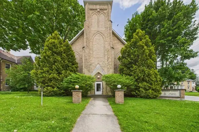 Presenting a truly unique opportunity at 241 Centre Street, Wingham, this exceptional two-storey yellow brick church stands as a testament to timeless architecture and enduring character. The property boasts a steel roof, ensuring both durability and low maintenance for years to come. Inside, you’ll find two convenient 2-piece bathrooms, a functional kitchen equipped with a stove and refrigerator, and the comfort of forced air natural gas heating throughout. The original hardwood floors add warmth and charm, while an updated electrical panel provides peace of mind and modern functionality. Zoned as Community Facility (CF), this building offers flexibility for a variety of uses, making it ideal for community organizations, creative ventures, or unique redevelopment projects. The property’s great curb appeal and abundance of character make it a standout in the neighborhood, offering plenty of potential for those seeking something truly special.