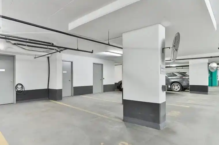 Parking spot with attached concrete room locker, it has a steel door. Fob access. Ventilation in locker.