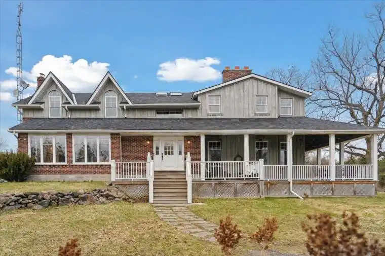 This breathtaking 174.6-acre estate is an extraordinary find. Towering trees form a natural canopy over the private road, leading to rolling hills, meandering trails, two serene streams, and a picturesque ravine-an outdoor paradise of beauty and tranquility. At its heart stands a masterfully preserved Loyalist stone cottage, a testament to history for over 150 years. Lovingly restored and expanded with two substantial additions, this home now offers almost 4200 sq. ft. of living space, blending heritage charm with modern comfort. With 6 bedrooms and 2 full baths, there’s ample space for family and guests. Two of the bedrooms serve as an office and craft room, offering versatility for remote work, hobbies, or creative pursuits. Upstairs, one bedroom is staged as a flexible retreat-ideal as a second family room, games room, library, or billiards room. A sprawling wrap-around covered porch invites relaxation while embracing the peaceful surroundings. Four wood-burning fireplaces add warmth, while the grand family room, framed by substantial solid wood beams, is bathed in natural light from east, west, and north-facing windows. The kitchen is ready to be reimagined, allowing you to design a space that blends seamlessly with the homes historic charm. The modern wing offers room to create a luxurious primary suite, providing a private retreat that merges history with modern comforts. A magnificent century-old barn stands as a striking landmark. With soaring ceilings and a vast lower level, it holds relics of the past-perhaps even valuable antiques-waiting to be rediscovered. Whether restored, repurposed, or left untouched, the barn remains a defining piece of the property’s story. Despite its privacy, the estate is just 10 minutes from the 401 and under 20 minutes from the 407. approximately 100 acres are leased to a neighboring farmer. This one-of-a-kind estate is ready for its next chapter – an extraordinary opportunity to create a lasting legacy.