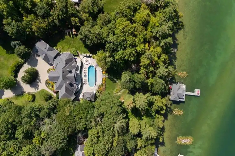 Stunning World-Class Waterfront Estate on Kempenfelt Bay / Lake Simcoe! Privately nestled along one of the most prestigious and coveted roads on Kempenfelt Bay, this extraordinary estate is offered for sale. Gated and masterfully designed, the property showcases the pinnacle of craftsmanship, elegance, and timeless luxury. Envisioned as a true family compound, the estate comprises multiple residences designed for entertaining and privacy: the grand main house, a private apartment, a boathouse, and a cabana. Together, they provide 10 bedrooms, a bunk room accommodating 8, 11 bathrooms, 2 full kitchens, and 3 kitchenettes offering exceptional flexibility for family, friends, and guests. The main residence features a one-bedroom loft with full kitchen and bath, while the rare water lot highlights an Incredible one of a kind boathouse with kitchenette, bedroom/bathroom, living/dining with folding glass doors for indoor/outdoor lakeside living, double slip wet boathouse, permanent dock, extensive decking, remote lifts. Poolside cabana with dramatic fold-away doors continue Outdoor living elevated with frameless glass railings, expansive stonework, covered and uncovered sitting, lounging and dining areas are perfectly positioned for breathtaking sunsets and lake views. Resort-style amenities define the exterior, including a Betz Gunite pool with waterfall, infinity edge, and hot tub, glass-walled terraces, a poolside BBQ pavilion, and a cozy wood-burning fireplace surrounded by intimate seating. Inside, refined details abound: Incredible Chefs Kitchen, reclaimed antique elm hardwood floors, a custom wrought-iron staircase, elegant crown mouldings, four gas fireplaces, and extensive soundproofing for total comfort and privacy. A true one-of-a-kind sanctuary, this world-class waterfront estate must be experienced to be fully appreciated. Presentation, Photo Gallery, Floor Plans In Link.