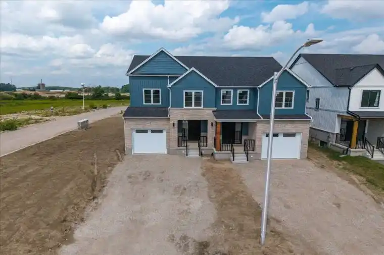 Opportunity knocks! Beautiful curb appeal for an equally beautiful Mitchell countryside setting. The Graydon semi detached model is our best layout yet!! It combines successful design elements from previous models to achieve a configuration that fits the corner lot. Modern farmhouse taken even further to enhance the entrances of the units and maintain privacy. Large windows and 9 ceilings combine perfectly to provide a bright open space. A beautiful two-tone quality-built kitchen with center island, walk in pantry, quartz countertops, and soft close mechanism sits adjacent to the dining room from where you can conveniently access the covered backyard patio accessible through the sliding doors. The family room also shares the open concept of the dining room and kitchen making for the perfect entertaining area. The second floor features 3 bedrooms and a work space niche, laundry, and 2 full bathrooms. The main bathroom is a 4 piece and the primary suite has a walk in closet with a four piece ensuite featuring an oversized 7 x 4 shower. The idea of a separate basement living space has already been built on with large basement windows and a side door entry to the landing leading down for ease of future conversion. Surrounding the North Thames river, with a historic downtown, rich in heritage, architecture and amenities, and an 18 hole golf course. Its no wonder so many families have chosen to live in Mitchell; make it your home!
