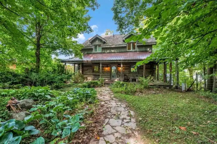 One of only eleven waterfront properties on Sumac Lane, this stunning four-season log home, built in 2005, offers just under 74 feet of frontage on Little Lake. Tucked away on a privately maintained road, the home screams rustic charm, creating an ideal year-round residence or weekend retreat. Inside, the heart of the home is the large chefs kitchen, complete with a generous island and open to the main floor living and dining areas, perfect for entertaining family and friends. Beautiful cherry floors and cupboards complement the natural log construction, while three copper-surround fireplaces (one on each level, including in the primary bedroom) add warmth and character throughout. The spacious primary suite spans the full length of the home along the water side, offering breathtaking views. The walk-out basement features a large recreation room, sauna, and easy access to the outdoors. Enjoy the wrap-around porch, expansive back deck overlooking the water, and a fully screened-in sunroom off the main living room. Only 90 minutes from the GTA, this property offers a rare combination of privacy, comfort, and peaceful waterfront living that could either be your home away from home, or your full time residence.