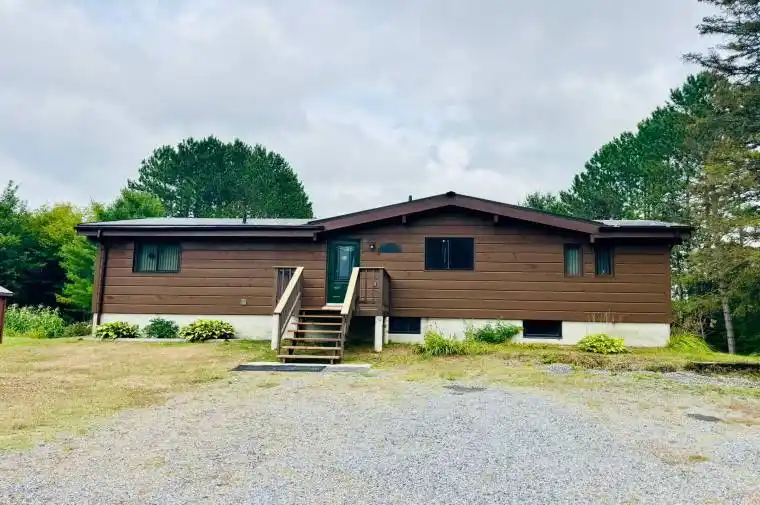 Discover a tranquil retreat on 25 acres of picturesque woodlands, complete with a spring creek, nestled in a private setting. This modern rural residence is conveniently located just 20 minutes from Burk’s Falls or Sprucedale, with public boat launches only a 10-minute drive away.This incredible property boasts two detached car garages and a spacious 20×50 barn featuring eight stalls, a 20×36 shop, a chicken house, 8×8 a new shed and ,greenhouse 10×20. Enjoy the fruits of your labor with thriving apple, pear, raspberry, blueberry, and cherry trees, along with a flourishing asparagus patch.The home offers a perfect blend of modern and rustic design, featuring an open-concept living area that seamlessly integrates the kitchen, dining, and great room. A cozy gas fireplace adds warmth and ambiance, making it an inviting space for gatherings. The kitchen is equipped with ample cabinetry and counter space, along with a stove and cooktops for all your culinary needs.The walkout basement includes large patio doors, providing easy access to the outdoors. This level also features a separate laundry room, storage area, Murphy bed and an additional 4 bedrooms currently using as cold room and dry room. complemented by a second wood stove. Two rooms in the basement have been converted into a dry room and an extra insulated cold room, adding functionality and convenience. Wildlife abounds on this stunning property, making it an ideal sanctuary for nature lovers.Dont miss the chance to create your own rural paradise.