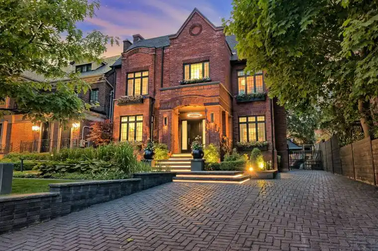 Extraordinary South Hill Landmark Residence. A rare offering of architectural brilliance and historic significance, this storybook red-brick estate was originally built in 1908 and is attributed as the early residence of Lawren Harris, celebrated founder of Canada’s famed Group of Seven. Painstakingly rebuilt w/a full-scale reconstruction and rear addition in 2018, followed by an elevated design renovation in 2020 by Sherwood Homes and Connie Braemer Design, this property masterfully blends heritage charm w/modern luxury. Behind its romantic façade lies a sophisticated contemporary interior, curated with exceptional attention to detail. The dramatic foyer showcases a Nero Marquina and Oriental White marble checkered floor beneath a mirrored bronze ceiling, with Macassar ebony archways and custom aged-metal French doors. The living room offers a bespoke black metal fireplace with nero assoluto stone and custom window seating, while the jewel-like powder room is wrapped in Phillip Jeffries cork wallpaper. The chefs kitchen by Cando Woodworking features rift-cut ebony-stained oak cabinetry w/brass detailing, a custom metal hood, Belvedere quartzite counters, 10 sliding glass doors that connect seamlessly to the outdoors. Ebony-stained mahogany millwork and a sleek black metal mantel enrich the adjoining family room. The primary suite is a private retreat w/custom Sapele mahogany furnishings, a Noir St. Laurent marble fireplace, and a boutique-style walk-in closet. The ensuite is clad in Noir St. Laurent marble with a dramatic backlit feature wall, custom vanity, and integrated sinks. Outdoors, a spectacular acrylic and stainless-steel pool by Elite Pools anchors the private garden oasis, complemented by extensive cedar decking, multiple terraces, and retractable awnings. A heated driveway with custom pavers and illuminated walkway complete this world-class residence. This is more than a home, it is a South Hill landmark, where history, design, and luxury converge.