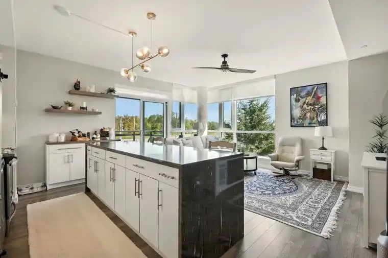 Downsizing? Empty Nesters? Or simply seeking the ultimate resort lifestyle? Welcome to Friday Harbour! This rare 3-bedroom corner suite offers unobstructed breathtaking marina and Lake Simcoe views, with sun-filled southeast exposure from morning until sunset. The spacious, open-concept layout flows seamlessly to a large balcony-perfect for lounging, dining, or watching the boats drift by. Inside, no detail is overlooked: a stunning two-sided waterfall granite island anchors the chefs kitchen, ideal for entertaining or casual mornings alike. Premium upgrades include custom closet organizers, sleek mirrored sliding doors, and elegant finishes throughout. Beyond your door, Friday Harbour delivers a world-class lifestyle: stroll the vibrant boardwalk with boutique shops and restaurants, enjoy the beach and lakefront, tee off at The Nest championship golf course, or explore scenic nature trails. With year-round events and amenities, this is more than a home-its a destination. Come and experience all the amenities and resort lifestyle Friday Harbour has to offer! Don’t Miss Out!
