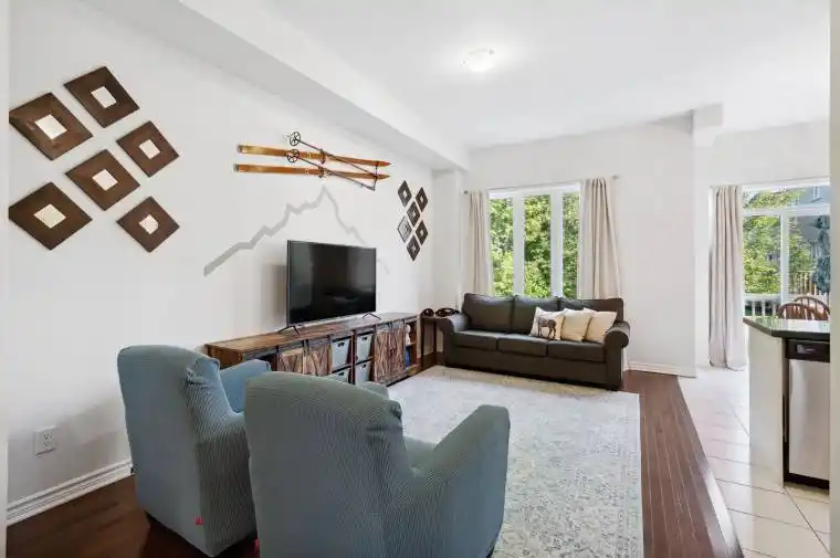Welcome to this beautifully appointed carpet-free 3-bedroom, 2.5-bathroom townhouse in a highly desirable, family-friendly neighbourhood. What truly sets this home apart is its unbeatable location, just a short walk to the beach, one of the areas best schools, scenic trails, and a wide range of local amenities. Nestled in a quiet community this townhouse offers the perfect blend of style, comfort, and everyday convenience. The main floor boasts 10′ ceilings, a spacious entrance, a convenient powder room, and an open-concept eat-in kitchen that seamlessly integrates with the living area – perfect for both everyday living and entertaining. Upstairs, with 9′ ceilings throughout, you’ll find a primary bedroom with a well-appointed 4-piece ensuite, a main 4-piece bathroom, and two additional bedrooms. Both upper levels feature elegant hardwood and tile flooring, enhancing the homes modern appeal. The finished basement provides a versatile recreation room and ample storage, ideal for family activities and organization. Outside, enjoy a partially fenced backyard, a 1-car garage, and an extra driveway space for convenient parking.