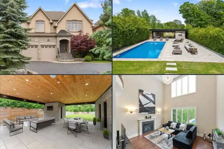Welcome to this spectacular custom executive home, nestled on a RARE 374FT DEEP PREMIUM LOT offering ultimate privacy and serenity. Surrounded by trees and fully fenced, the professionally landscaped backyard is a true oasis featuring over $200K in recent upgrades. Enjoy resort style living with an INGROUND SALTWATER POOL with automatic cover, expansive patio, and stunning covered cabana with pot lights and gas lines ready for your firepit and BBQ. Whether you’re entertaining guests or enjoying a quiet evening outdoors, the large grassy area and ambient lighting create the perfect setting. Inside, enjoy luxury finishes throughout, including hardwood floors, smooth ceilings with elegant crown moulding, pot lights, and generously sized rooms. The gourmet eat-in kitchen boasts stainless steel appliances, a center island with breakfast bar, a butlers pantry with prep sink, walk-in closet, and ample storage. The great room features soaring ceilings, and the main floor includes a private office. Upstairs, the primary suite offers double-door entry, vaulted ceilings, a 6-piece spa-like ensuite, and his/her walk-in closets. Oversized secondary bedrooms come with ensuites or semi-ensuites. Additional highlights include a balcony library/piano room and an unspoiled basement ready for your personal touch! With a spacious double car garage and third tandem spot, this home truly has it all – just minutes to the 401, the GO Station, shopping, restaurants, schools, and parks.