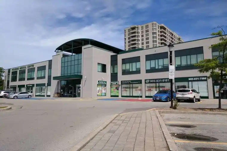 Pickering Medical Centre is a 2 storey medical building located on the corner of Kingston Rd and Glenanna Rd in Pickering. This buildings in the heart of a densely populated residential and retail neighbourhood, directly across from the Pickering Town Centre with abundant free patient and tenant parking. Less than a five minute drive to hwy 401 and walking distance to Pickering GO station.
