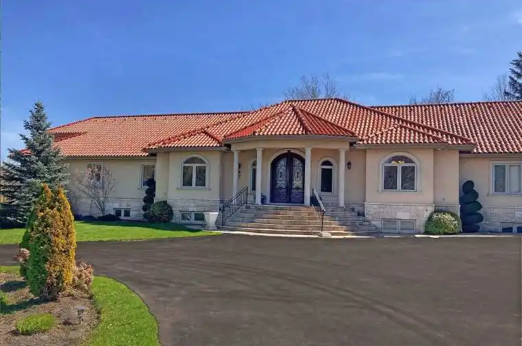 Discover your personal paradise nestled in the enchanting beauty of Terra Cotta-a remarkable 11-acre estate featuring a nearly 2-acre spring-fed private lake brimming with wildlife. This Spanish-style raised-ranch is perfectly complemented by a striking terra cotta tile roof. Step inside to an expansive open-concept foyer with a 14-foot ceiling, leading into a family room highlighted by a floor-to-ceiling stone fireplace. The home boasts 18 rooms on the main level, showcasing vaulted and recessed ceilings. The layout includes 4+1 bedrooms, with 4 of them having en-suite bathrooms, totaling 5 bathrooms. The main level features elegant travertine tile flooring, while the living room, dining room, bedrooms, and office are adorned with walnut hardwood. Multiple walkouts lead to a large deck overlooking the vast lawn that gently slopes to the private lake. The bright +1 bedroom with an en-suite and private walkout offers a tranquil retreat for guests, family, or as a nanny suite. Enjoy the comfort of a high-end, dual-redundant in-floor radiant heating system that warms the entire home and the 4-car garage, providing consistent warmth even on the coldest days while promoting an eco-friendly lifestyle. Relax with family and friends by the freshwater pool, which is fully equipped for conversion to saltwater. Welcome to your dream home, where luxury meets tranquility, all just 10 minutes from downtown Georgetown, 8 minutes from Northwest Brampton and 30 minutes from Pearson Airport.