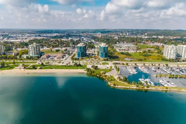 You wont want to miss this opportunity to own this beautiful, spacious, and bright 2 bedroom, 2 bathroom + den Bermuda model in the highly sought-after Nautica Condos. This 1,381 sq. ft. unit includes two underground parking spaces, a locker, in-suite laundry, and stunning views of Kempenfelt Bay. The open concept floor plan is ideal for entertaining, while the versatile den can serve as a dining room, home office, or second living space. The kitchen is equipped with a brand new stove (Sept 2025), new sink and faucet (Sept 2025), granite countertops, stainless steel fridge and microwave (July 2024) and loads of cupboard space. Both the living room and primary bedroom offer walk-outs to a private balcony, perfect for enjoying the view. The primary suite boasts a walk-in closet, two additional closets, and an ensuite with a large jacuzzi tub and a separate shower. The unit has also been professionally cleaned (Sept 2025), move-in ready! Building amenities include a pool, sauna, gym, concierge, on-site management, visitor parking, party rooms, and a games room. Located just steps from the beach, downtown, walking trails, the marina, and the Allandale GO Station, this condo combines lifestyle and convenience.
