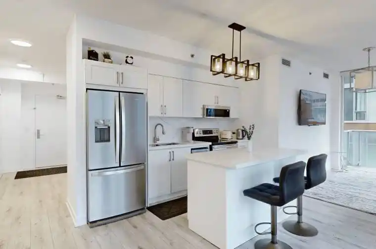 Spacious Corner Unit With Wall To Wall AND Floor To Ceiling Windows! Den is extra large and being used As 3rd Bedroom. 1171 Sq Ft PLUS L-Shaped Balcony, Featuring 2 walk-outs & City Skylines! Open Concept Floor Plan-Great for entertaining, Fresh Paint, Laminate Floors. Updated Kitchen in 2019 and features Quartz Counter, Quartz backsplash, Centre Island with Breakfast Bar! Spacious Primary Bedroom with large walk-in Closet and 4pc Ensuite Bathroom, Large 2nd Bedroom, spacious Den-used as 3rd bedroom along side 2nd full bathroom Washroom. New blinds ordered (see inclusions below for details), Pot Lights, New toilets, Upgraded light fixtures. 24-Hr Concierge, Rooftop Pool/BBQ area, Party room, Gym, Guest suites. Walking Distance and minutes To Shangri-La Hotel, Financial & Entertainment District, Hospitals, AGO, Four Season Centre for the Performing Arts, Queen West, Eaton Centre, City Hall, Nathan Phillips Square & Steps Away From TTC, Restaurants & so much more. Desirable unit number #818