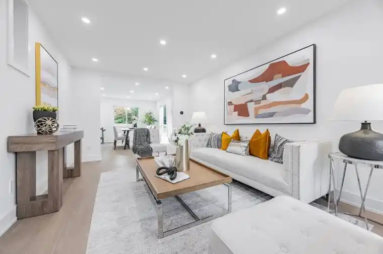 Exquisitely finished approx. 3000 square feet detached house, 48×112 feet lot, a true sanctuary that blends modern sophistication with timeless appeal, this is more than a house, it is a private retreat waiting to be called home. Smart home system with automatic lighting control, voice control and equipment control. Smooth ceiling throughout, pot lights, skylight above staircase, filled with natural sunlight, high end finishes, engineered hardwood floor throughout, gourmet kitchen, quartz countertop and backsplash, high end appliances, built-in oven and microwave, smooth cook top, spa-like bathrooms, optimized layout. Main floor with office and 3 pcs washroom, elegant laundry room with quartz countertop and cabinet. Master bedroom with high end ensuite washroom, freestanding bathtub, large glass shower, LED mirrors, walk-in closet. Large family room with classic wood-burning fireplace. Upgraded 200 AMP electrical supply, Tesla EV charger, with ESA certificate. Driveway 2025, shingle and gutter 2024, water tank 2021, furnace and AC 2010. Finished media room in basement. Walk to schools, parks, bus stations, restaurants, close to plazas, shopping mall, quick access to Go train, Hwy 407, 404 and 401. Don’t miss it!