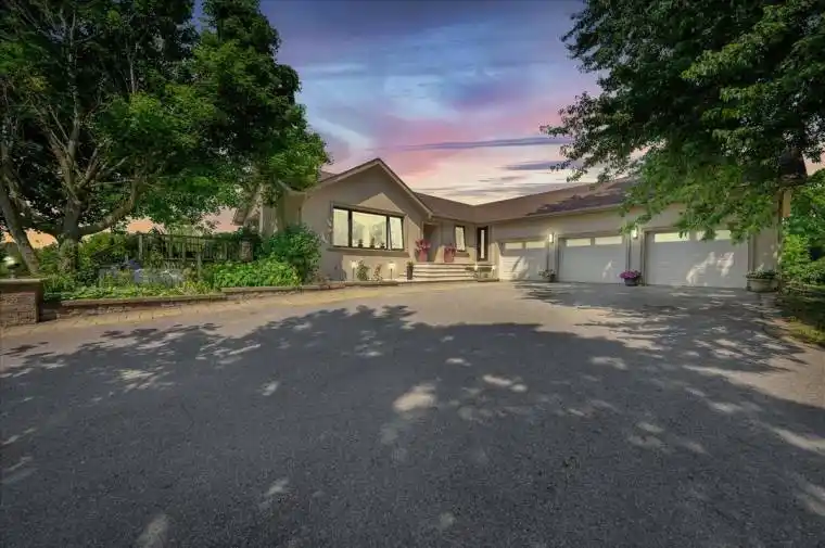 Welcome to 27900 Thorah Sideroad! A 103-acre country retreat surrounded by rolling hills, spring-fed streams, and unspoiled natural beauty just minutes from Lake Simcoe and Beaverton Harbour. Behind the iron gates, a winding driveway leads to a striking custom-built raised bungalow (2013) offering nearly 4,000 sq ft of finished living space with a 3-car garage and beautifully landscaped grounds. Designed to capture panoramic views through oversized windows, the home blends luxury and comfort with heated floors in all three bathrooms, a chefs kitchen with a walk-in pantry and premium appliances, and a cozy wood-burning fireplace. The walk-out lower level is perfect for entertaining with a custom bar, library, and direct access to outdoor firepit and patio areas. A 40×50 steel-clad barn provides endless versatility for hobby farming, storage, or recreation. With two driveway entrances, serene privacy, and proximity to town, the GO Bus, marina, and amenities, this rare property offers the perfect balance of nature, function, and refined country living.