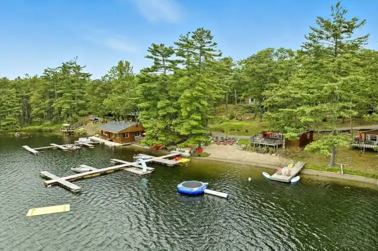 BLUE MOUNTAIN LODGE | LAKE KASSHABOG – This iconic landmark has been lovingly cared for and nurtured by the same family for the past 42 years. Offering 7 two bedroom house keeping cottages, a 1600 sq ft three bedroom primary residence, a restaurant with Liquor License, 20+ boat slip docking system, 2.4 acres, 3 trailer sites and 370 feet of some the best waterfront you will find. Blue Mountain Lodge is more than just a family resort, it is a lifestyle. With loyal, repeat clients, this resort is setup for the next owner to have a turnkey operation. Not interested in running a business? How about an amazing family compound. Pride of ownership is evident as you roam the well manicured property, showcasing a gorgeous beach with expansive lake views, lake side decking and flourishing gardens. Surrounded by snowmobile and ATV trails as well as endless acres of crown land often enjoyed by hunters, Blue Mountain Lodge offers unlimited untapped 4 season potential. Come see what you’ve been missing!