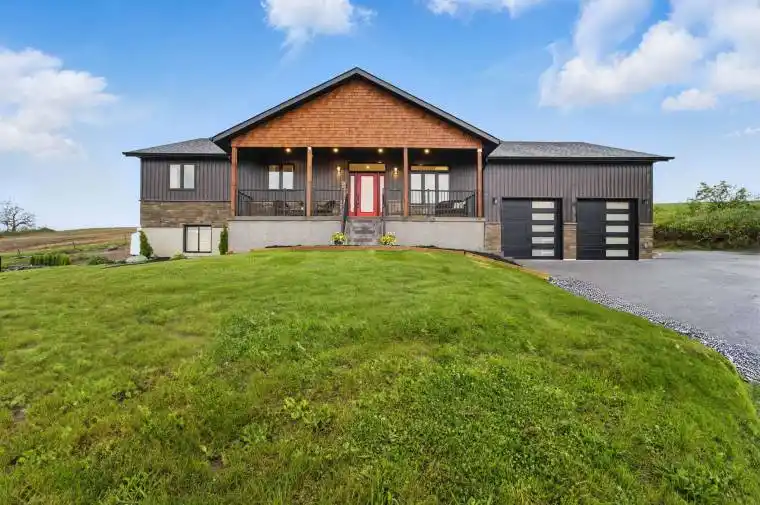 Welcome to 7942 County Rd 45, a custom-built 2022 bungalow nestled on a picturesque 1-acre lot in the rolling hills of Northumberland County. This thoughtfully designed home offers elegant, open-concept living with 9-foot ceilings throughout the main floor. The bright and spacious living room features coffered ceilings and recessed lighting, creating a warm and sophisticated space. A gourmet kitchen with exceptional finishes boasting floor-to-ceiling cabinetry, high-end appliances, a large island with a breakfast bar, and pocket doors leading to a walk-in pantry with extra storage for small appliances. The dining area features a seamless indoor-outdoor flow, offering access to a large, low-maintenance composite deck and gazebo, ideal for entertaining or relaxing in nature. The primary suite is a true retreat, featuring a coffered ceiling, a feature wall, a walk-in closet with built-ins, and a spa-inspired en-suite with heated floors and a rain shower. Two additional bedrooms, a four-piece bathroom, and a convenient main-floor laundry complete the level. The finished basement offers incredible flexibility for multi-generational living or an in-law suite. It includes a spacious recreation/media room, a potential kitchen area with plumbing rough-ins, three bedrooms (one of which serves as an office), and a stylish four-piece bath. The attached garage features 15-foot ceilings and extra storage space, perfect for all your toys. Additional features include a propane furnace, heat pump (AC), HRV system, complete water filtration, well pump, two electrical panels, and a sump pump. This turnkey home combines upscale country living with thoughtful design and functionality, just a short drive to town amenities. Don’t miss your chance to own this incredible property!