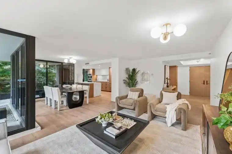 Where the treetops meet timeless design. Tucked into the canopy and wrapped in sunshine, this fully reimagined south-east corner suite is where nature and luxury merge. Spanning 1,906 sq ft with a rare 215 sq ft wraparound balcony, this residence lives like a house where every inch has been professionally redesigned by a local interior designer, to an exceptional level of craftsmanship. Thoughtful design combined with extensive use of custom millwork exudes warmth and luxurious vibes throughout. The spacious, sun-dappled living and dining rooms with walls of windows flow seamlessly into the kitchen for effortless living and hosting. Featuring a dramatic waterfall countertop, top-of-the-line appliances, and all the accessories a chef could want. Both bedrooms are king-sized, with spa-worthy ensuites and extensive closet space. The generous primary suite boasts a 5-piece that feels straight out of a luxury spa, plus a huge walk-in closet fitted with gorgeous built-ins and LED shelving. The large separate den is ideal as a 3rd bedroom or office boasting stunning ravine views. Other highlights include oak wide-plank hardwood throughout, smooth ceilings, beautiful light fixtures, custom remote blackout blinds and stunning laundry room. A separate storage locker and 2 parking spaces, one conveniently on the same level as the suite, complete the dream. York Mills Place is known for its impeccable management, exceptional 24hr concierge staff, and all-inclusive maintenance fees (yes, even fibre cable & internet). Amenities include indoor pool, gym, party room & ample visitor parking. Hallway and common area renovations are now underway, (see the beautiful designer renderings for what’s to come!). Set just off Yonge, steps to the subway and moments to the 401, surrounded by golf, tennis, parks, and nature trails, plus all the midtown shops/restaurants/conveniences, close to everything yet feels like you’re away from it all.