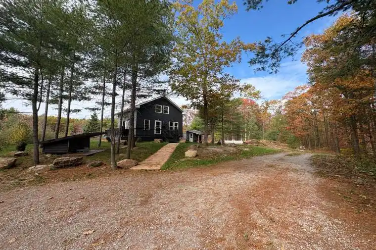 EXCEPTIONAL home with modern comfort and rustic charm, creating an inviting space that is both cozy and contemporary. Situated on just over 3 acres of lush, natural landscaped, this property offers an exceptionally efficient off-grid living experience without sacrificing convenience. With 3 bedrooms and a modernly designed full bath, this home is perfect for those seeking tranquility and privacy. The expansive wraparound deck provides an ideal setting for entertaining or relaxing while enjoying breathtaking wildlife views and the soothing sounds of nature. Bright and airy, the interior is illuminated by skylights and natural light, creating a warm and welcoming atmosphere. Equipped with solar panels, this home promotes sustainable living and energy efficiency, all while being conveniently located near local amenities. Just a short drive away, Queen Elizabeth II Wildlands offers incredible scenery! Whether you want to paddle your canoe, enjoy a peaceful fishing trip, or simply soak in the natural beauty, this nearby sanctuary is perfect for outdoor enthusiasts and nature lovers alike. This is a rare opportunity to embrace a lifestyle that blends privacy, comfort, and the natural beauty of your woodland oasis. Don’t miss out on this exceptional property!