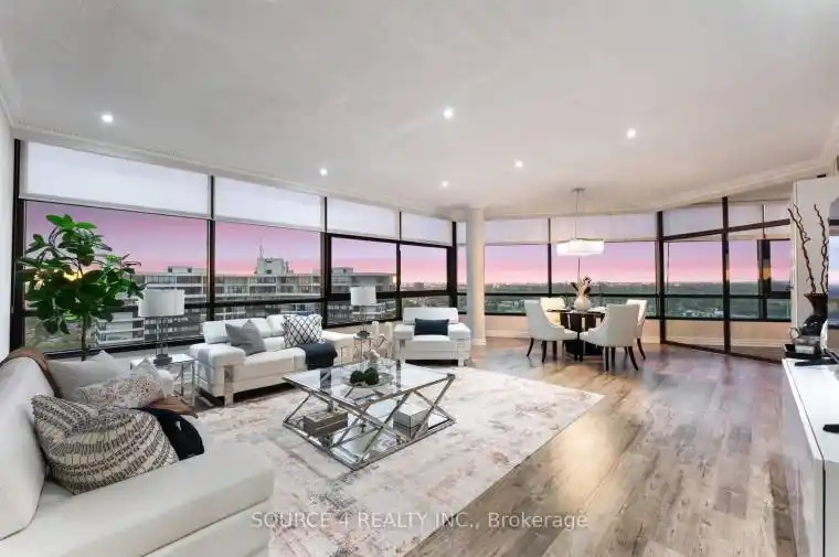 Welcome to an extraordinary, rarely offered two-storey penthouse suite nestled in the heart of Mississauga. Spanning nearly 3,300 square feet of beautifully upgraded living space, this exceptional 3 +1 bedroom, 2-bathroom residence redefines luxury condominium living. Set high above the city, this unique property offers breathtaking panoramic views of both the Mississauga and Toronto skylines, along with Lake Ontario, making it truly one of a kind.As you step inside, you’re welcomed by a grand, oversized foyer that immediately sets the tone for the expansive layout that follows. The main level boasts generous principal rooms with soaring ceilings and an abundance of natural light. A sprawling living and dining area provides the perfect setting for entertaining or quiet evenings at home, while the upgraded finishes including premium flooring, designer lighting, and custom window treatments add a layer of refined sophistication.The modern kitchen is a chefs dream, complete with high-end stainless steel appliances, quartz countertops, and ample storage. A versatile den on the main floor offers the ideal space for a home office, creative studio, or additional guest bedroom perfect for todays flexible lifestyle needs.The second level is entirely dedicated to the luxurious primary suite, offering ultimate privacy and comfort. This serene retreat features a spacious bedroom area, a beautifully appointed ensuite bath, expansive closet space, and a dedicated laundry room for added convenience.With its unique two-level layout, incredible square footage, and prime location, this penthouse offers the rare opportunity to enjoy house-sized living with the ease of condo life. Located on the same floor as the buildings indoor swimming pool and spa, this penthouse offers the ultimate in luxury and convenience. Whether you’re entertaining or relaxing, this is an unparalleled opportunity to own a sky-high haven that truly stands out from the rest. (Furnishings avail for sale).