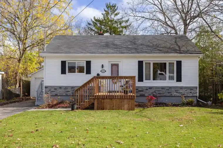 Cute, cozy, and completely move-in ready – this 2-bedroom plus den, 1-bath bungalow with detached garage and a fenced yard is full of charm, comfort and convenience. Fully renovated just three years ago, it blends modern updates with classic warmth. Inside, you’ll find a bright and inviting layout with hardwood and porcelain flooring. The kitchen and living areas flow easily together, creating a relaxed space that feels instantly like home. Second bedroom has garden doors that open directly onto a private rear deck, a perfect place for your morning coffee or quiet evenings under the stars. Enjoy peace of mind with thoughtful updates that make everyday living easy – new furnace (2024), select new windows, refreshed basement flooring, landscaping and a brand-new front deck designed for enjoying sunset views. Step outside into your large, fully fenced yard, backing onto a park – ideal for kids, pets, or just a bit of extra privacy. End your day around a portable fire pit (Fire Department-approved), or perfect star-lit nights with friends and family. The detached garage provides secure parking or a great workshop space, while a separate entrance adds flexibility for guests and hobbies. The location couldn’t be better – walking distance to schools, shops, trails, and both the Gananoque and St. Lawrence River. Don’t wait – charming homes like this don’t last long!