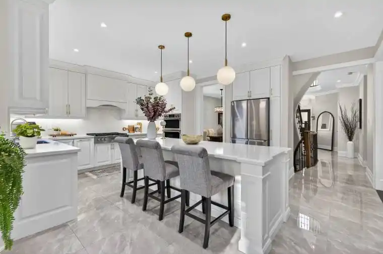 Fully Renovated Family Home with Luxury Finishes & In-Law Suite in Prestigious Woodbridge! Welcome to this beautifully upgraded residence offering over 2,700 sq ft above grade plus a fully finished basement apartment with a private side entrance. Ideally located just steps to Kleinburg Village, McMichael Art Gallery, transit, shops, top-rated schools, and lush parks. This home blends refined design with everyday convenience.Step inside to find a grand foyer with an incredible centered rod iron staircase- a true show stopper. The stunning main floor renovation completed in 2023, showcasing soaring ceilings, recessed lighting, crown moulding, modern colonial 7″ baseboards, and a show-stopping chef’s kitchen anchored by a 9-ft centre island with intricate detailing, quartz counters and backsplash, under-cabinet lighting, Beveled shaker cabinets with raised panel detailing, and brushed gold hardware. Enjoy high-end appliances, custom cabinetry, and an open-concept layout that flows seamlessly into your private backyard retreat-complete with a patio, vegetable garden, and tranquil greenery for ultimate privacy. Upstairs, the updated second level (2023) offers a massive primary room with a walk-in closet, full 5pc ensuite and natural light pouring through the many windows. The three other spacious bedrooms are carpet free with a modern bathroom, closets and thoughtful touches throughout. The finished basement suite (2020) provides flexibility for multi-generational living or rental income, featuring a full kitchen, separate laundry, and its own private entrance. Situated across the street from Sonoma Park and beside Jean de Brébeuf Park, this home is surrounded by nature yet minutes from every urban amenity. Perfect for couples or growing families seeking upscale living in a sought-after community.