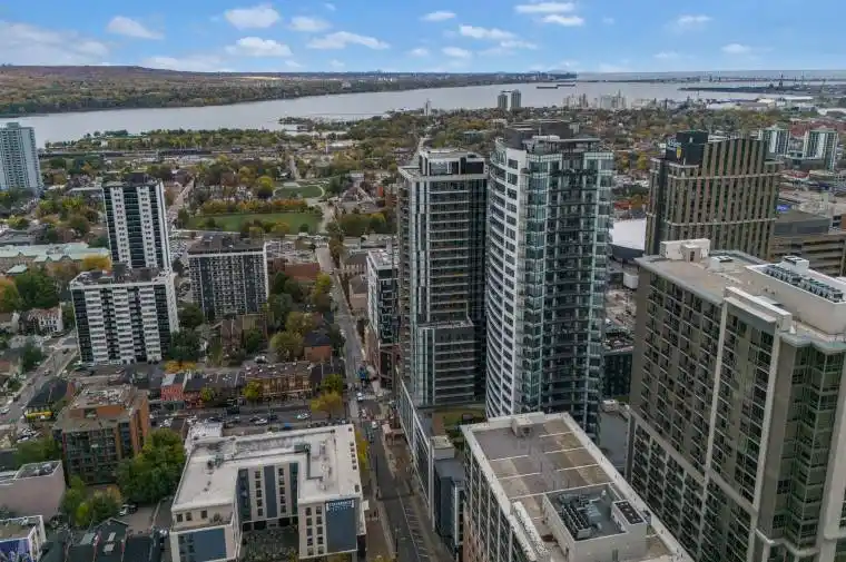 Experience upscale urban living in this beautifully designed, spacious, luxury apartment at20 George Street, one of Hamilton’s most desirable addresses. This contemporary high-rise offers a perfect blend of sophistication, convenience, and comfort – ideal for professionals seeking a stylish home base in the city’s vibrant core. Step inside this spacious 1003 squarefoot, 2 bedroom, 2 bathroom open-concept suite featuring floor-to-ceiling windows that flood the space with natural light and showcase breathtaking city and escarpment views. The sleek modern kitchen is equipped with stainless steel appliances, quartz countertops, plenty of cupboard space and elegant finishes throughout. You’ll feel like a king looking out at the stunning southwest views over the city and beautiful escarpment from two spacious balconies.Lots of storage space, in-suite laundry, and custom blinds. Unwind at the end of the day inthe premium building amenities including a state-of-the-art fitness centre with yoga room,rooftop terrace with BBQs, party lounge with pool table, meeting room/boardroom, bike storage and more. Parking available for additional $150 per month or $200 per month plus hydro for EV. Live in the heart of it all! Steps to Hamilton’s vibrant restaurant and arts scene!You’re minutes to James St S. shops and restaurants, Go station, St Joseph’s Hospital,McMaster University Downtown Centre, Jackson Square, FirstOntario Centre, the Art Gallery of Hamilton, 403/QEW highway access, and HSR Public transportation. Easy access to Bruce trail, Hamilton’s waterfalls and Harbourfront parks. Whether you’re a busy professional, medical resident, or executive seeking convenience and class, 20 George Street offers a truly elevated lifestyle in the Heart of Hamilton’s ambitious downtown core!