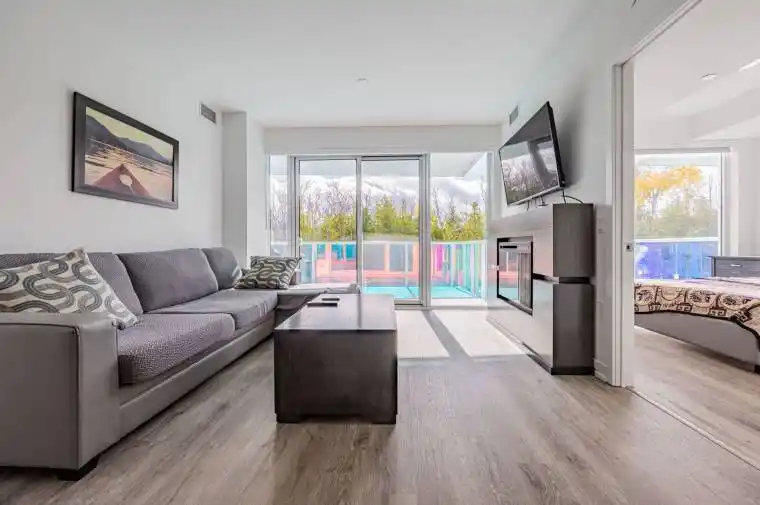 ***Fully Furnished 2-Bedroom with Peaceful Forest View at Sunseeker*** Discover effortless luxury living at Sunseeker, the newest gem of Friday Harbour Resort. This fully furnished and beautifully upgraded 2-bedroom, 2-bathroom residence captures the essence of refined resort living – offering both sophistication and comfort in equal measure.With west-facing exposure and peaceful forest views, this elegant suite is bathed in natural light and designed for ultimate relaxation. The open-concept kitchen and living area feature premium finishes, stylish cabinetry, and ample room for dining and entertaining, creating a seamless flow throughout.The primary bedroom includes a 4-piece ensuite bathroom, built-in cabinetry, and large windows, while the second bedroom provides flexibility for guests or a private workspace. Step outside to a spacious balcony overlooking the dry courtyard and Lake Club, a serene setting to unwind and enjoy the sunset.Every element – from the thoughtfully curated furnishings to the high-end upgrades – reflects the quality and ease of the Friday Harbour lifestyle. Whether for full-time living or a seasonal retreat, this home offers a perfect blend of modern comfort, west-facing views, and tranquil forest scenery.