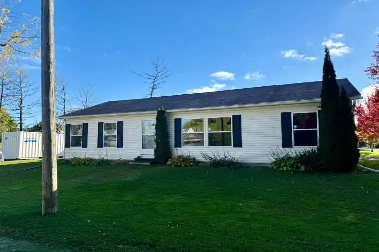 Great bungalow in the quiet village of Tiverton. Situated on a 59′ X 134′ lot this 1250 sq. ft. home was built in 2012. The home offers 3 bedrooms, primary has an ensuite bath, open concept kitchen, dining and living room. There is no basement but the crawl space is a perfect spot to use for storage, 200 amp service, newer water heater, newer washer and dryer. Home is connected to natural gas so the heating system is such. The rear deck measures 34′ X 12′ so plenty of outdoor sitting space. Located a short drive to the beautiful sand beaches in Inverhuron and minutes to Bruce Power or Kincardine. This would make a great started home, retirement home or income property.