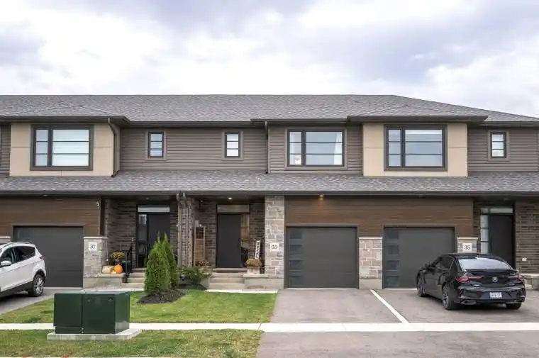 Welcome to 33 Evylean Court! This modern freehold townhome by Hayhoe Homes (2023) is located in the desirable Orchard Park Meadows community. Move-in ready, this stylish 2-storey townhome offers 3 bedrooms, 2.5 bathrooms, and a single-car garage equipped for and EV charger. Step inside to a bright, open-concept main floor featuring 9′ ceilings, luxury vinyl plank flooring, and a designer kitchen with quartz countertops, island, and pantry. The spacious great room includes sliding doors leading to a private rear deck with BBQ gas hookup – perfect for entertaining. Upstairs, you’ll find a generous primary suite with a walk-in closet and ensuite, along with two additional bedrooms, a 4-piece bath, and convenient second-floor laundry. The unfinished basement is ready for your personal touch – with a bathroom already roughed in and pre-framed walls for easy finishing. Additional features include central air, HRV, and numerous upgraded finishes throughout. Enjoy freehold living with no condo fees in a prime southeast St. Thomas location – close to the hospital, parks, schools, trails, shopping, and restaurants. Only 25 minutes to London and a short drive to Port Stanley beaches. Don’t miss your chance to call 33 Evylean Court home!